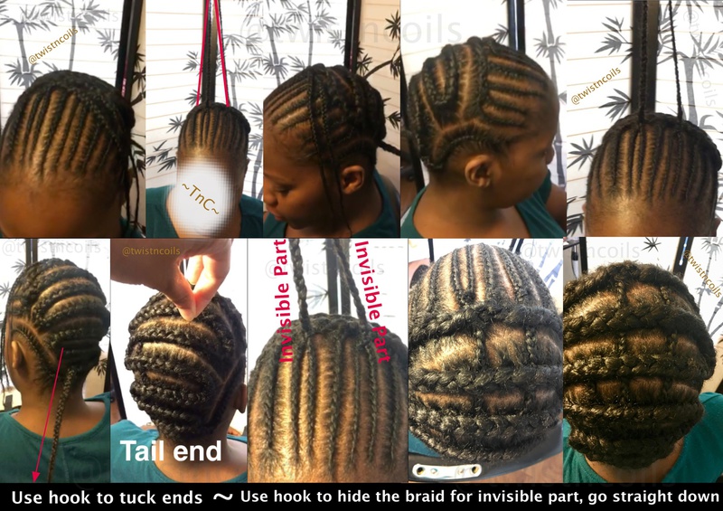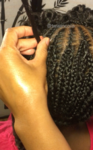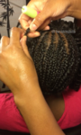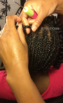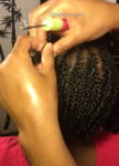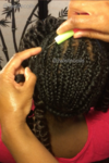 Step 4: Install the small pieces on each braid for the invisibile part or edgeline and only slide on side through the loop 3-4 times and secure, trim if needed and add non alchololic mousse and the style is COMPLETE and guess WHAT??? "WE USED LESS THAN TWO PACKS OF HAIR IN THE COLOR 1b WITH THE PULL APART METHOD.